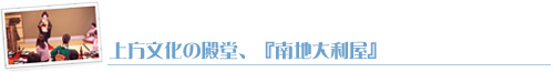 (財)上方文化芸能協会では、『南地大和屋』閉店後も関西財界の後援のもと、上方文化芸能の保存発展、伝統文化行事への一層の参加をはかることを目的に、『上方花舞台』の運営を始めさまざまな活動を行っています。